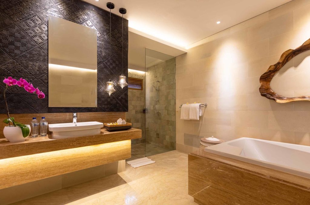 Both suites feature elegant bathrooms with Indian stone showers and oversized bathtubs for indulgent couples’ soaks. With its own entrance, the guest house gives you the option to enjoy togetherness or privacy, as you choose.