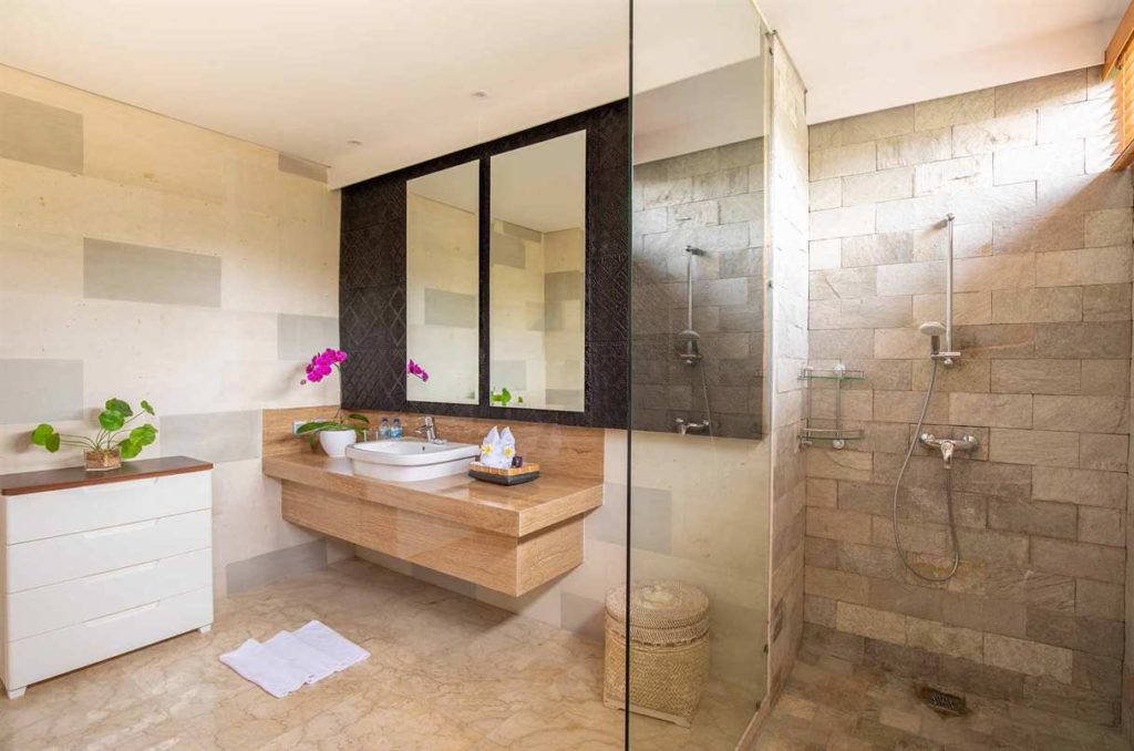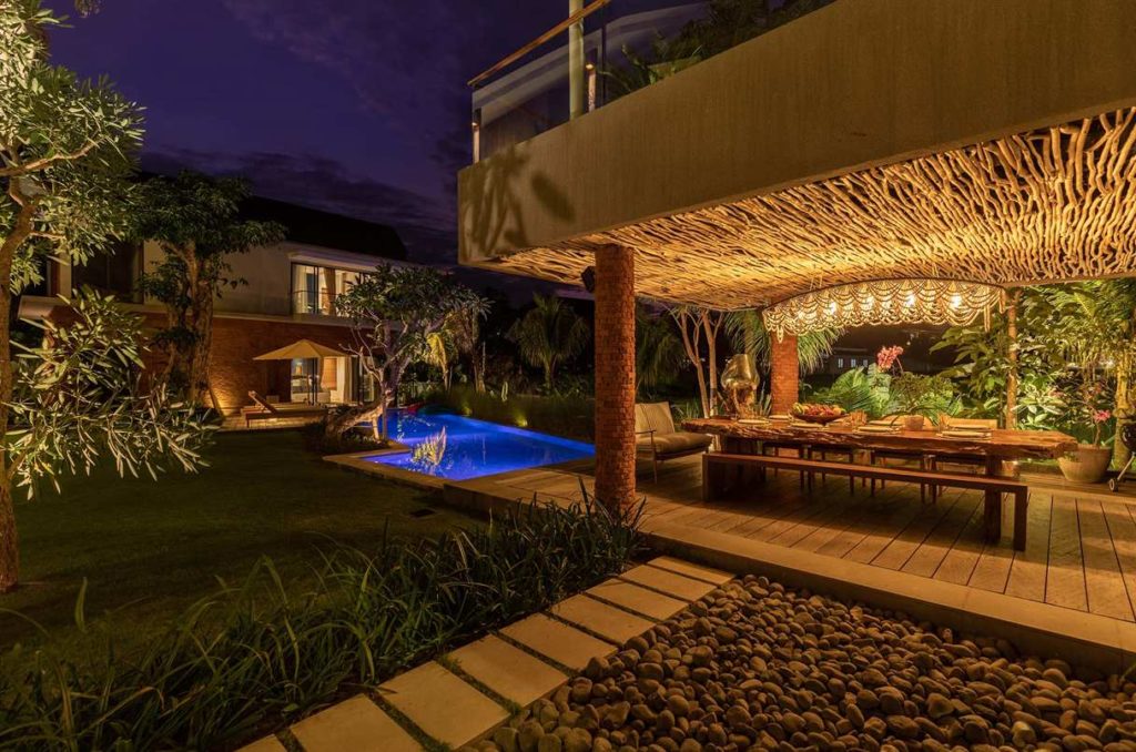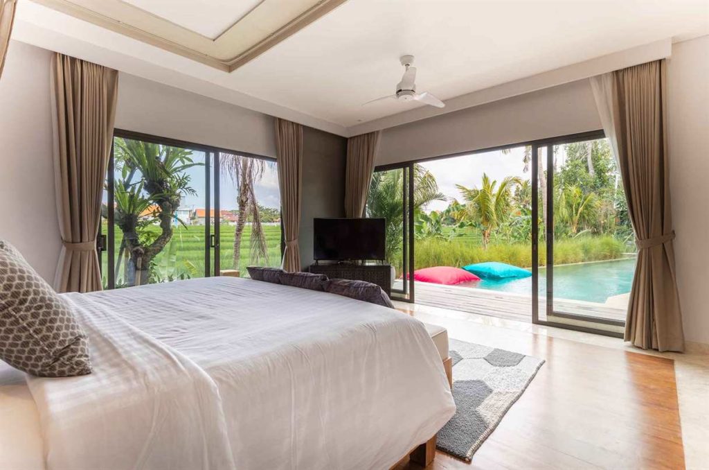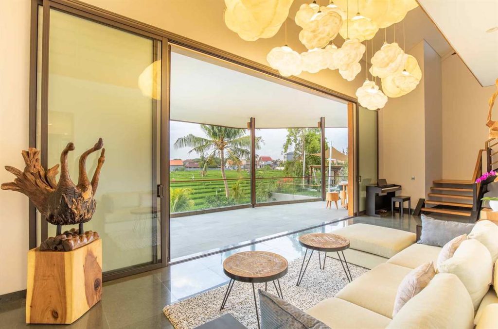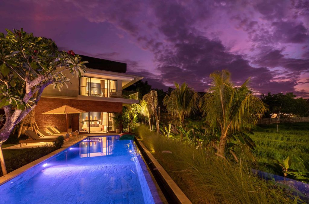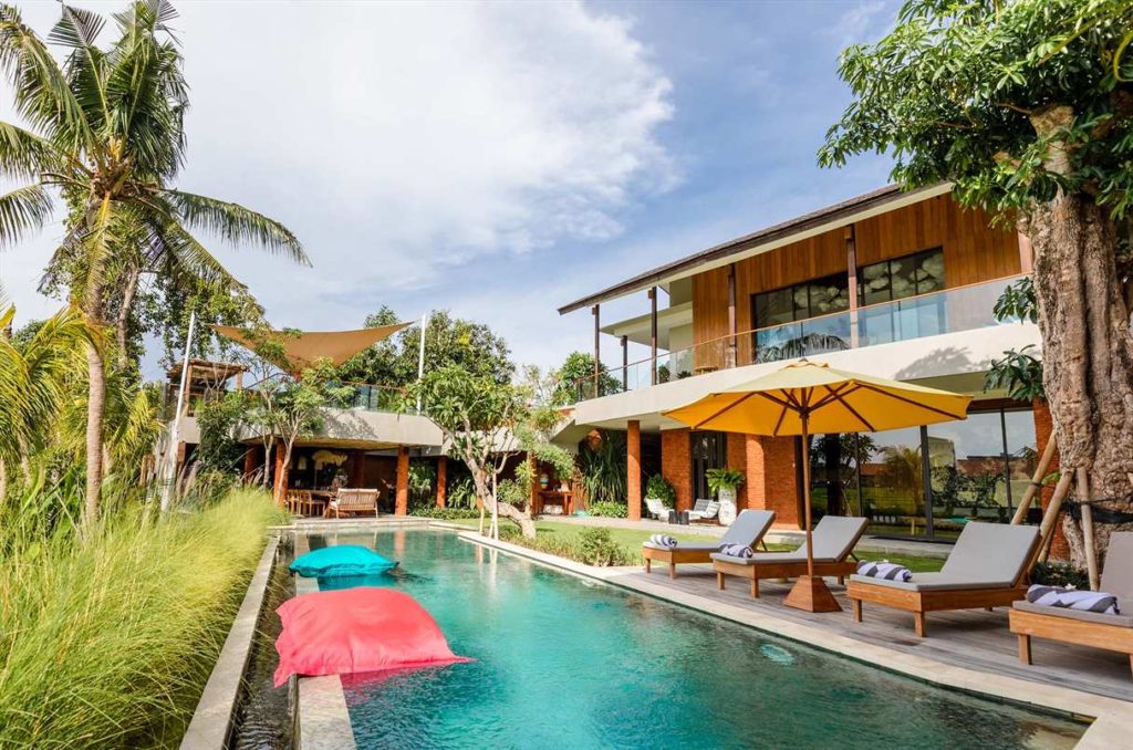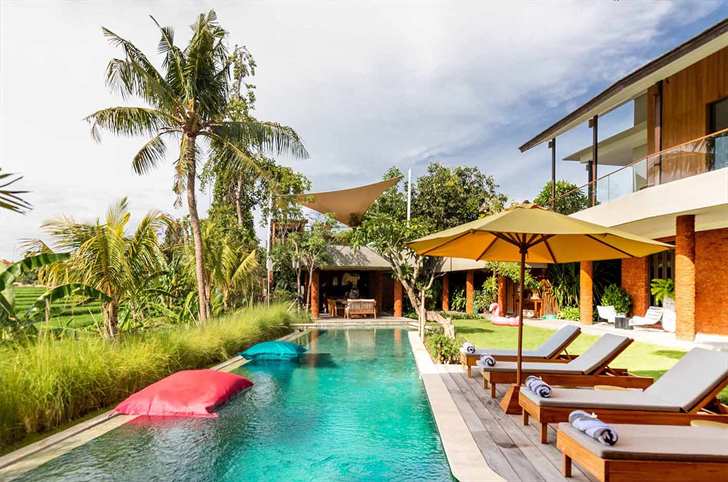 Step outside to your own tropical oasis. Between the main and guest house lies a 16-metre saltwater pool made of green Indian stone, complete with a sun deck, floating beanbags, and views across Bali’s famous paddy fields.