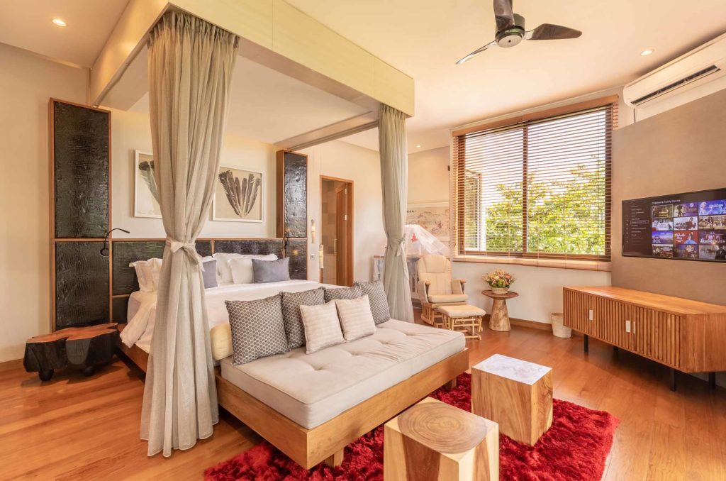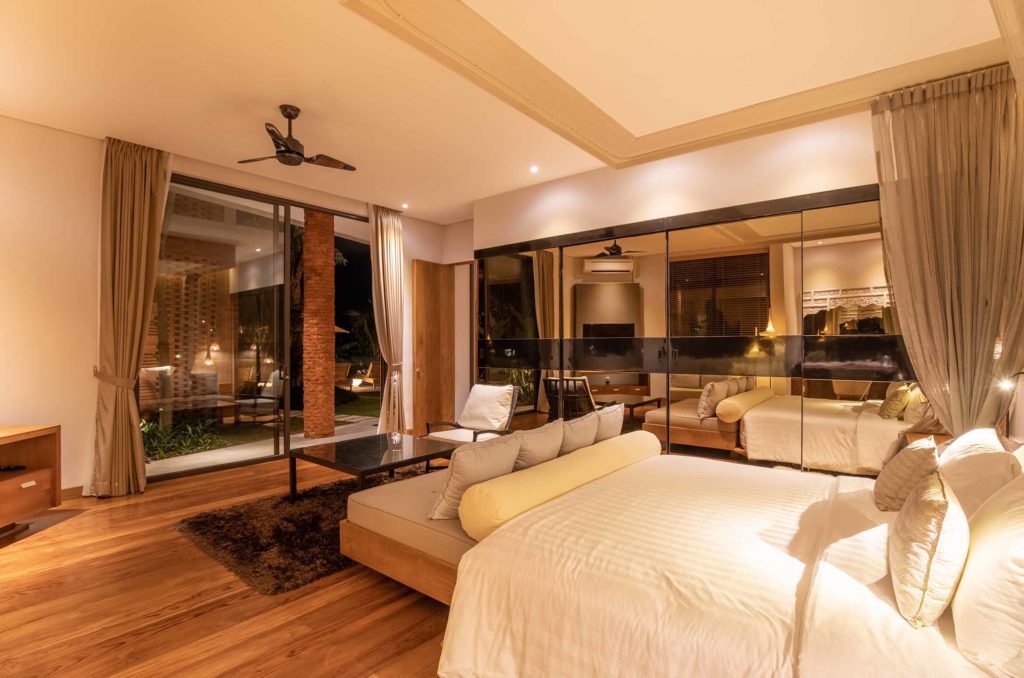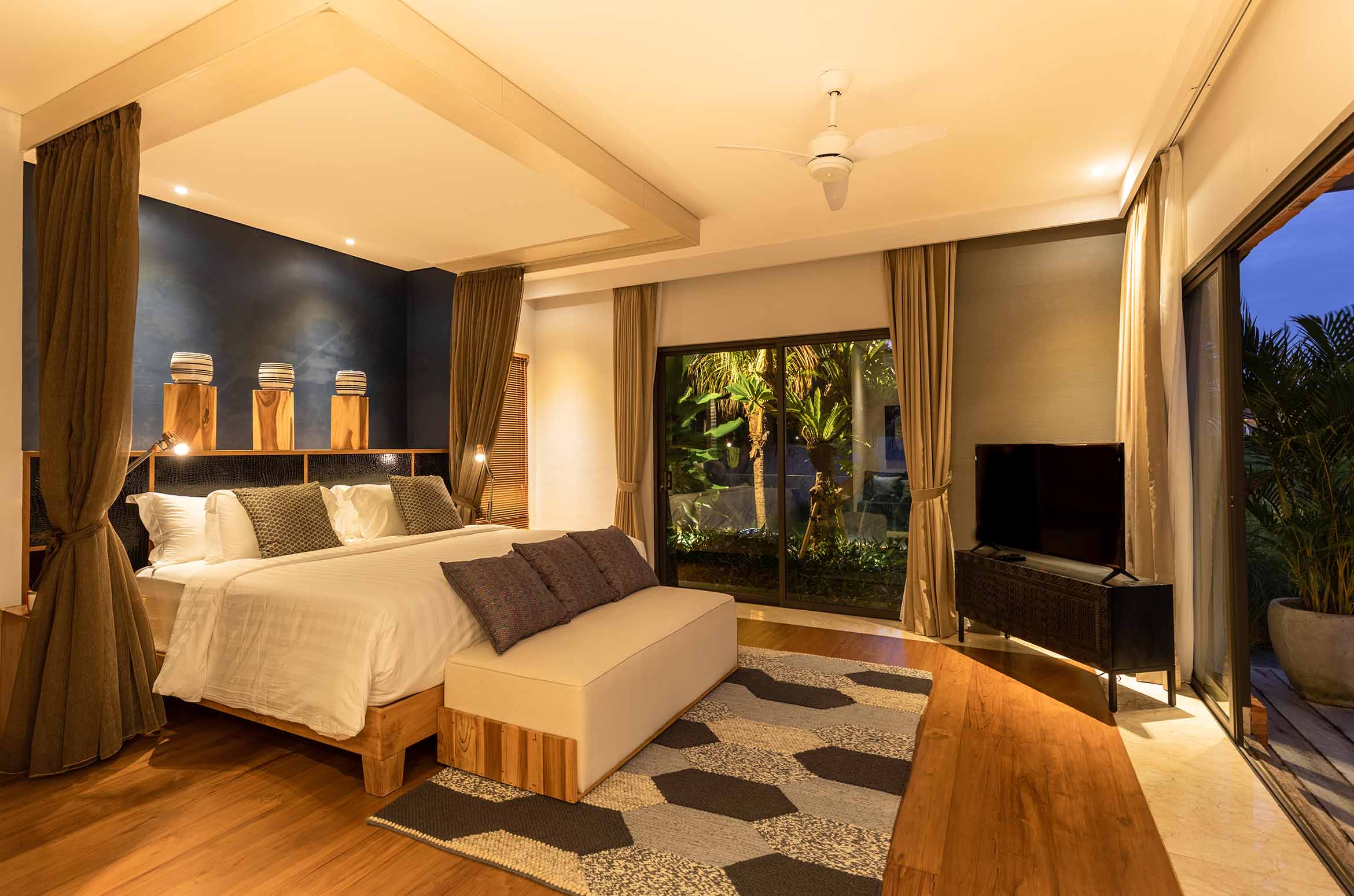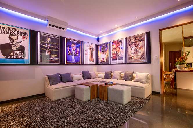 Villa Kimaya’s main house spans three beautifully designed floors. On the ground floor, you’ll find the spacious Master Suite, a fully equipped indoor kitchen and lounge, and the media room – perfect for film nights, sports or karaoke.