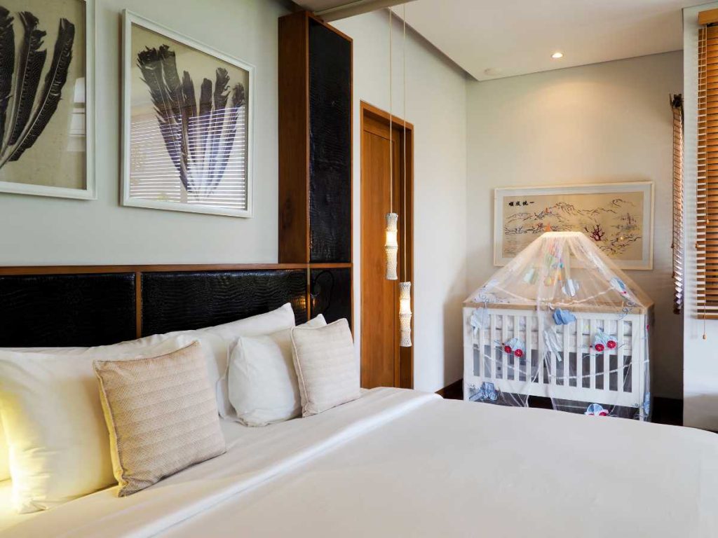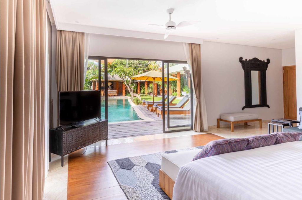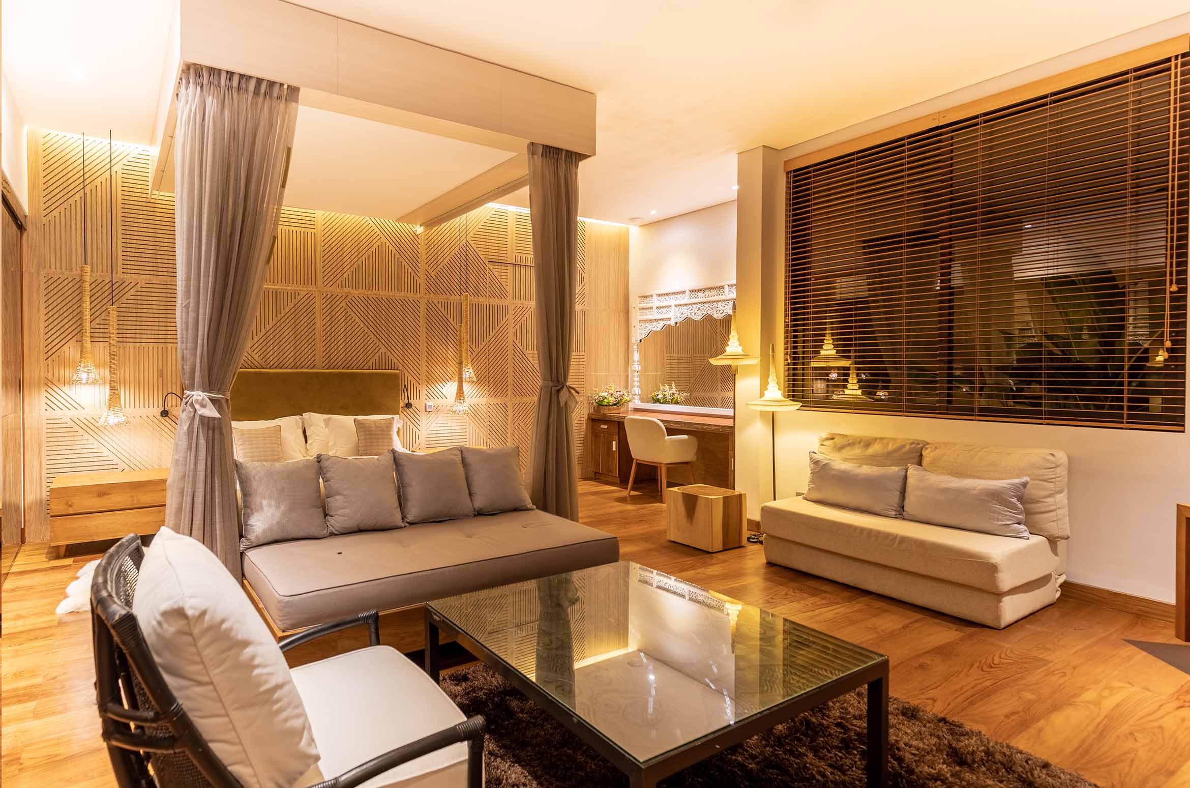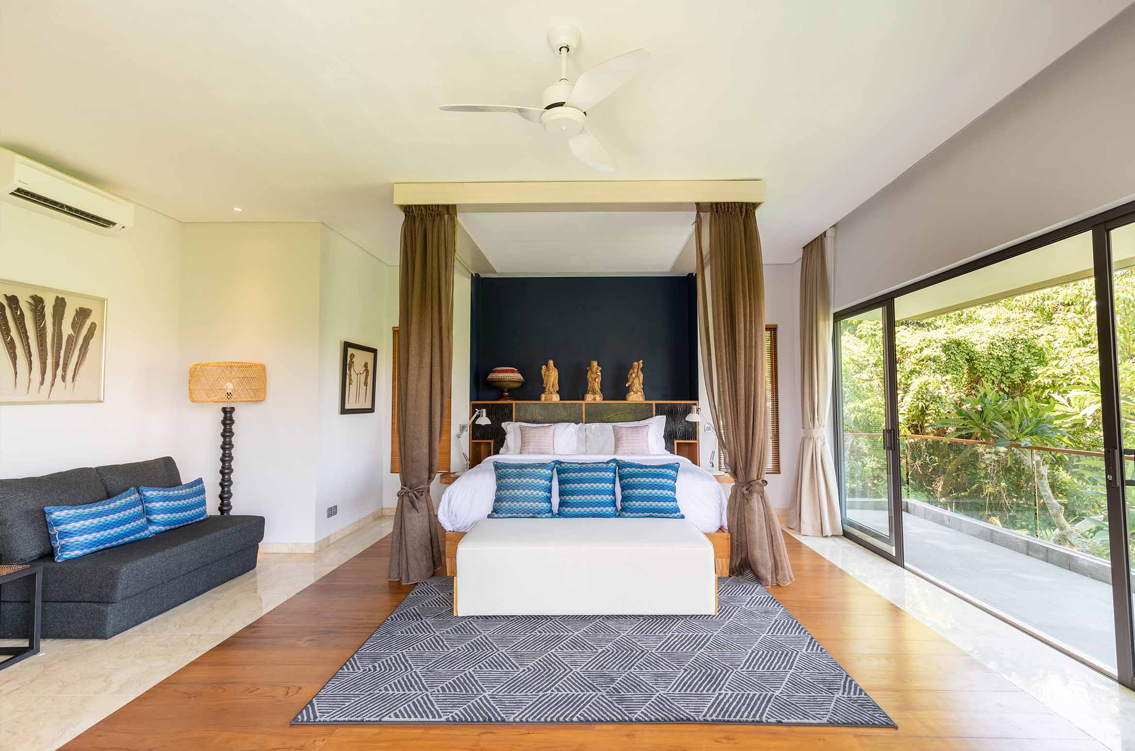 Villa Kimaya’s main house spans three beautifully designed floors. On the ground floor, you’ll find the spacious Master Suite, a fully equipped indoor kitchen and lounge, and the media room – perfect for film nights, sports or karaoke.